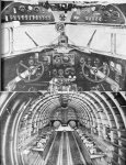 The cabin could be equipped for a variety of roles. For the basic cargo configuration, with a maximum load of 6,000 lb. (2,722 kg.), pulley blocks were provided for cargo handling and tiedown rings to secure it in flight. Alternative layouts could provide for the transport of 28 fully-armed paratroops accommodated in folding seats along the sides of the cabin, or for 18 stretchers and a medical team of three. Racks and release mechanism for up to six parachute pack containers could be mounted beneath the fuselage, and there were also underfuselage mountings for the transport of two three-bladed propellers.