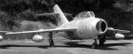 The MiG-15 was clearly a generation ahead of the MiG-9, a leading-edge design by anyone’s standards. It was a clean all-metal aircraft, built mostly of aircraft aluminum alloy, and featuring all-swept flight surfaces. The wing, as mentioned, had a 35-degree sweep, along with an anhedral droop of 2 degrees and an incidence of 1 degree. There were also two fences on the wing, to minimize airflow running down the wingspan and off the wingtips, which would have reduced the effectiveness of the control surfaces. The aircraft also had a conventional flight control surface arrangement, and initially all control surfaces were unpowered; a pressurized cockpit with a backwards-sliding bubble canopy and an ejection seat powered by an explosive cartridge, apparently the same as that used on the MiG-9UTI; a tricycle landing gear, all with single wheels, the nose gear retracting forward and the main gear hinging from the wings in towards the fuselage; a nose air intake with a bulkhead running down the middle, feeding an RD-45F centrifugal-flow turbojet with 22.3 kN (2,270 kgp. / 5,005 lbf.) thrust. The rear fuselage could be pulled off for servicing the engine, with the break line at the hinge edge of the flaps. Finally, there was a simple electronics suite including a radio, a radiocompass, a radar altimeter, and an instrument landing system.
