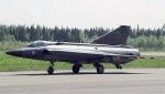 The type was approved for full production in 1956 as the J 35A (Adam) where J stood for Jakt (Fighter). By that time the specifications had been raised, dictating a fighter with a top speed of Mach 1.8. Two more prototypes were built with J 35A features, both flying in 1958. The first, which was actually the fifth prototype in the number sequence, was originally fitted with an imported Avon Mark 48A engine, but later refitted with the equivalent Swedish-built RM6B engine, which was to be the production J 35A powerplant. The second, the fourth prototype in the number sequence, had the RM6B engine from the outset. Following successful evaluation of the prototypes, the J 35A was put into series production. First deliveries to the Flygvapnet were in March 1960.