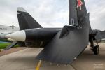 | MOTOR: Dos motores turbofán de poscombustión Soloviev D-30F11 de 93,1 kN (9.480 kgp) de empuje con salidas de vectorización de empuje bidimensionales y tridimensionales en pruebas. Empuje en seco de 153 kN (15.422 kgp) con posquemador. | ENGINE: Two Soloviev D-30F11 afterburning turbofan engines, 93.1 kN (20,900 lbf) thrust each engines with 2-dimensional and 3-dimensional thrust-vectoring nozzles planned for testing. Dry, 153 kN (34,000 lbf) with afterburner. |