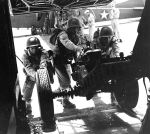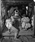 Waco designed a unique system to allow the jeep to go into action quickly, using the vehicle to raise the nose of the glider. After the jeep had been loaded into the glider, a cable was hitched to the pintle of the jeep. When the glider had landed and come to a halt, or even while yet airborne, the driver of the jeep started its motor. Glidermen cut or untied lashings holding the vehicle in place. The glider pilots hastily got out of the nose. The driver then drove slowly forward. As he did this, the cable pulled the nose up. The vehicle´s wheels pushed the ramps, causing them to fall forward to the ground so the vehicle could drive out of the glider. When the nose had been raised fully it automatically locked, and when the jeep had driven a few more feet, the cable automatically unhitched from the pintle of the jeep. The total procedure took but a few seconds to accomplish, Early models of the CG-4A took off on wheels which were jettisoned above the take-off field, to be recovered later. They landed on plywood skids.