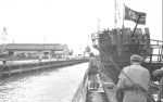 In January 1945 the U-boat departed Batavia for Norway, but her diesels had troubles and she was redirected to rendezvous and refuel U-532. This U-boat was bound for Europe with a cargo of tungsten and raw rubber. After returning to Batavia, the U-195 departed again for Surabaya for repairs. It was there that the crew received the surrender of Germany on 5 May. The German naval attaché in Tokyo, Vizeadmiral Paul Wennecker and the Deutscher Admiral Ostasien (German Admiral, East Asia) sent the code-word signal «Lübeck» to all U-boats in Asia. The Germans surrendered the submarine to the Japanese and her crew was interned as prisoners of war in a Japanese nearby camp.