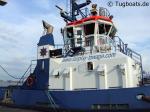 The rudder propellers are Schottel type SRP 1515 FP with fixed pitch propellers of 2.70 m (8.85 ft) diameter running in nozzles. The Schottels protrude approximately 0.80 m (2.62 ft) beneath the hull’s bottom. The skegs are different within the two tug series. The skeg begins behind the curvature of the bow and ends about 6 m (19.68 ft) from the stern in the first series. The second series has kind of a flat bulbous bow and the skeg ends approximately 8 m (26.24 ft) from the stern. At the end of the skeg the draught is 15 cm (5.9 in) larger as at the propulsion units to provide some protection in the case of a grounding.