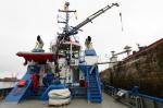 El castillo de proa incluye un ancla combinada accionada hidráulicamente y un cabrestante de remolque montado delante de la superestructura. Se trata de un cabrestante Brusselle Marine Industries tipo SLH150.20/2-2-2 con dos tambores, dos elevadores de cadena y dos cabezales. Un tambor transporta un cable de fibra sintética de 90 m y un cable de acero de 15 m. El segundo tambor está equipado con equipo portuario convencional que consta de 90 m de acero sintético de 52 mm de diámetro. Alternativamente, el segundo tambor puede equiparse con un cable de remolque marítimo de mayor longitud. Los tambores proporcionan potencias de tracción de 44 toneladas de 0-10 m/min, 8,5 toneladas de 44 m/min y 6 toneladas de 50 m/min. La potencia de frenado es de 180 toneladas en seco y de 160 toneladas en mojado.