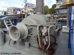 The forecastle includes a hydraulically operated combined anchor and towing winch is mounted in front of the superstructure. It is a Brusselle Marine Industries type SLH150.20/2-2-2 winch with two drums, two chain lifters, and two warping heads. One drum carries 90 m (295 ft) synthetic fibre rope and 15 m (49.21 ft) steel pennant for harbour use, the second drum is fitted out with conventional harbour gear consisting of 90 m steel wire with 52mm (2.04in) diameter, synthetic fibre ‘spring’, and a steel wire pennant. Alternatively the second drum can be equipped with a sea towing wire of greater length. The drums provide pulling powers of 44 t at 0-10m/min, 8.5t at up to 44m/min, and 6 t at up to 50m/min. The brake power is 180 t in dry and 160 t in wet conditions.