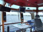 Dentro de la timonera hay dos consolas de control dispuestas a izquierda y derecha de la línea central del barco. Llevan todos los controles necesarios para las hélices del timón, el cabrestante, los motores principales y las luces de navegación. En la parte delantera, entre las consolas, se encuentra una pantalla multifuncional Transas con gráficos electrónicos. Los indicadores con los datos del motor principal y los indicadores para la orientación de las hélices del timón están dispuestos verticalmente a lo largo de los postes de las ventanas, delante y detrás de las consolas de control. La silla del capitán se puede mover libremente en la timonera.