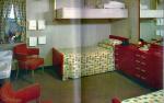 The new ship was christened on June 23rd 1951, and the name she was given could not fail to awake national pride with the American people. She was called the United States. To give her the great speed that was called for, Gibbs had installed massive turbines originally intended for aircraft carriers in his newly born brainchild. And in order to meet the other two requirements of safety and quick convertibility, Gibbs had chosen to give his vessel a new, simpler type of interior design. Almost obsessed of creating a completely fireproof ship, Gibbs had been careful to use no flammable materials when fitting her out. The United States was a ship of glass, steel, synthetics and aluminium. Furniture, handrails and deckchairs were all made of aluminium. Gibbs even approached the Steinway Company with a suggestion that they would provide a piano of aluminium for the United States, but they totally refused to do so. In the end it was said that the only wood that could be found on board the United States was that in the piano and the butcher’s block. But no passenger could complain about the ship’s comfort.