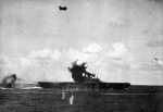 Of 41 torpedo planes launched by the American carriers, only six returned. Their sacrifices drew enemy fighters away from dive bombers of Enterprise and Yorktown who sank three Japanese carriers with an assist from submarine Nautilus. The fourth Japanese carrier, Hiryu, was sunk the following day; gallant Yorktown was lost to combined aerial and submarine attack.