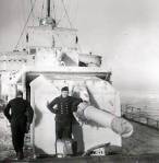 The following month, the flotilla and the heavy cruisers Admiral Scheer and Prinz Eugen shelled Soviet positions during the evacuation of Sworbe, on the Estonian island of Saaremaa, between 20 and 24 November. In mid-December, the 6. Zerstörerflotille, which now consisted of Z43, her sisters Z35 and Z36, and the large torpedo boats T23 and T28, was tasked to lay a new minefield between the Estonian coast and an existing minefield slightly further out to sea. T23 was to escort the other ships and the destroyers were laden with 68 mines each. The mission was postponed to the night of 11/12 December because of bad weather and the flotilla sailed on the morning of the 11th. The weather gradually worsened over the course of the day and the spray and rain made navigation difficult. Having sailed a bit too far north, Z35 and Z36 blundered into the Nashorn (Rhinoceros) minefield that was only 2.5 nautical miles (4.6 km.; 2.9 ml.) north of the intended position of the new minefield. They both struck mines and sank around 02:00; so close to the minefield, no effort was made to rescue any survivors in the darkness.