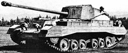 Although the British army tended to lag behind the Germans in upgunning its tanks as World War II progressed, an early decision by British planners to make a quantum leap in anti-tank gun calibres from 57 mm. (2.24 in) of the 6-pdr. to the 76.2 mm. (3 in) was a bold one, for it was made at a time when the 6-pdr was just getting into production. It was realizaed that the new 76.2 mm. gun, soon to be known as the 17-pdr., would be a large and heavy weapon on its towed carriage, so it was decided to find some means of making it mobile. Ideally the 17-pdr. was to be used as a tank gun, but the tanks large enough to carry such a large weapon were still a long way off (indeed had not even left the drawing boards) so a short-term alternative had to be found.