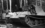 With the Jagdtiger the Germans produced the heaviest and most powerful armoured vehicle of World War II. The Jagdtiger had an official weight of no less than 70000 kg (154,324 lb) but by the time extra combat equipment and a full load of ammunition plus the crew of six had been added the weight rose to around 76000 kg (167,551 lb). Much of this weight was attributable to the armour, which was no less than 250 mm (9.84 in) thick on the front plate of the superstructure. The main armament was originally a 12.8-cm (5.04-in) PaK 44 anti-tank gun, but this was later changed to the similar PaK 80 and at one time a shortage of these guns caused by Allied bomber raids meant that the much smaller 8.8-cm (3.46-in) PaK 43/3 had to be used. The 12.8-cm guns were the most powerful anti-tank weapons used by any side during World War II, and the large size of its ammunition meant that each Jagdtiger could carry only 38 or 40 rounds. The defensive armament was two 7.92-mm (0.312-in) machine-guns. Without a doubt the Jagdtiger was a massive and powerful vehicle as far as weapon power and protection were concerned, but in respect of mobility it could be regarded only as ponderous. It was driven by the same engine as that used in the Jagdpanther, but this engine had to drive the much greater weight of the Jagdtiger and to do this had usually to be driven full out, considerably increasing the fuel consumption and reducing range. When moving across country the Jagdtiger had a speed of only 14.5 km/h (9 mph) and often less, and the maximum possible cross-country range was only 120 km (74,5 miles). This reduced the Jagdtiger from being a true Panzerjäger to a sort of mobile defensive pill-box, but by the time the Jagdtiger was in service the Germans were fighting a defensive war so the lack of mobility was not so desperate as it once might have been.