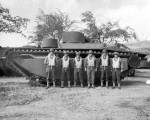 Roebling delivered the first incarnation of his civilian design with the LVT-1 and production by Food Machinery Corporation began soon afterwards in 1941 with 200 contracted vehicles. The LVT-1 sported a top speed of 12 mph. and armament was either two 0.30 caliber general purpose machine guns or two 0.50 caliber heavy machine guns mounted on rails or pintle mounts with optional limited shielding. Troop capacity was 18 to 24 combat ready soldiers. After some experience, four guns, two of each type, were being fitted forward and aft of the loading area for maximum support defense. Power was derived from a single Hercules WXLC-3 engine. Some 1,225 examples of the LVT-1 series were ultimately produced. It is of note that LVT-1 series models were not armored in any way beyond their factory «skins» and were generally intended as resupply vehicles.