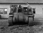 A pilot vehicle was penciled out under the designation of T32 and two prototypes were constructed. Self-defense would be handled by a modest addition of a single Browning M2 .50 caliber air-cooled machine gun in a raised cupola. Twenty-four 105mm projectiles would be displaced about the superstructure along the inside of the left and right side walls as well as under the floor, each projectile housed in individual protective cylinders. Armor was 51mm (2-inches) at its thickest point and power was derived from a single Continental R975 C1 series 9-radial engine of 350 hp. running at 2,400 rpm. Suspension was handled a vertical volute spring system. The T32 was placed through an appropriate series of trials at Aberdeen Proving Ground and eventually culminated with the M7 in February of 1942. Production was slated to begin in April of that year.