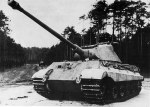 No sooner was the Tiger I in production than the decision was taken to develop an even better armed and armoured version, especially to counter any vehicle that the Soviets could introduce in the future, Once again Henschel and Porsche were asked to prepare designs. Porsche first designed a tank based on the earlier VK 4501 design and armed with a 15-cm (5.9-in) gun, This was rejected in favour of a new design with a turret-mounted 88mm (3.46-in) gun, which was soon cancelled as its electric transmission used too much copper, which at that time was in short supply. By this time the turrets were already in production and these were subsequently fitted to early-production Henschel tanks. The VK 4503(H) Henschel design was completed in October 1943, somewhat later than anticipated as a decision was taken to incorporate components of the projected Panther II tank.