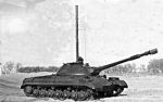 The first model to enter service was the T-10. This was armed with a 122mm. gun and a 12.7mm. DshK anti-aircraft and co-axial machine-guns. The 122mm. gun had an elevation of +17º and a depression of -3º, and a total of 30 rounds of 122mm. ammunition of the separate loading type was carried, as well as 1,000 rounds of 12.7mm. machine-gun ammunition. The T-10 fired two types of ammunition, an HE projectile which weighed 60lb. (27.3 kg.) and a APHE projectile which weighed 55lb. (25 kg.), both had a muzzle velocity of 2,904 ft/s. (885 m/s.). The APHE round could penetrate 7.3in. (185mm.) of armour at a range of 1,092 yards ((1,000 m.). The 122mm. gun had a maximum range of 18,154 yards (16,600 m.) with the gun at its maximum elevation, and its effective range in the anti-tank role was between 1,312 and 2,187 yards (1,200-2,000 m.).