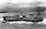 By the same time the Mitsubishi Company had already been experimenting several models of floating tanks, called SR I, SR II and SR III. They weighed between 3.6 and 7 tonnes, crewed by two or three men and protected by armour only 5 to 6 mm. thick. They all floated thanks to integral floating chambers in the watertight hull, and they mostly had a water propulsion patterned after the British Carden-Lloyd amphibious tank. None of them met the expectations of the Army who left the initiative of the floating tank design to the Navy on the verge of the Pacific war.