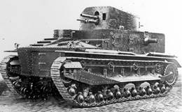 The Vickers design was a vast departure from the lozenge-shaped monsters dominating the battlefields of World War I. Like other tanks developed at the beginning of the 1920s, the Mark I sported something of a tall side profile made up of a hull and superstructure to which was affixed a curved and oblong turret. Unlike most tank designs of the time, however, the Mark I made use of an efficient turret compartment in which three of the five-man crew were situated. This essentially became the standard for tank designs to follow, a practice still utilized today. The five crew were made up of the driver, tank commander, gunner/mechanic and two dedicated machine gunners. The driver was situated in the front right of the hull, just left of the engine. The tank commander, gunner and one machine gunner took their positions in the turret. It is of note that the interior of the tank was not compartmentalized, meaning that the crew shared the same cabin space as the powerplant, something of a drawback when one considers the noise and fumes generated by the gasoline engine. Ten small doubled road wheels were fitted in pairs to either track side. The suspension system was sprung and helped to make speed a top attribute of the Medium Mark I. However, the tank was only allotted an armor thickness of 8 mm., making for poor armor protection overall, particularly along the critical forward-facing plates. Crew entry and exit was via double-hinged doors along the superstructure sides while there was also a door fitted to the rear of the hull, offset to the right. Power was supplied by an Armstrong Siddeley V-8 air-cooled gasoline engine delivering 90 hp. tied to a four-speed gearbox, the engine itself developed from an aircraft powerplant. Top speed was listed at 15 mph. with a range of 150 miles. The operational weight was just over 13 tons.