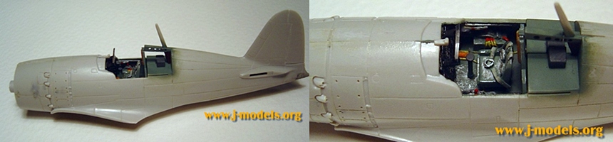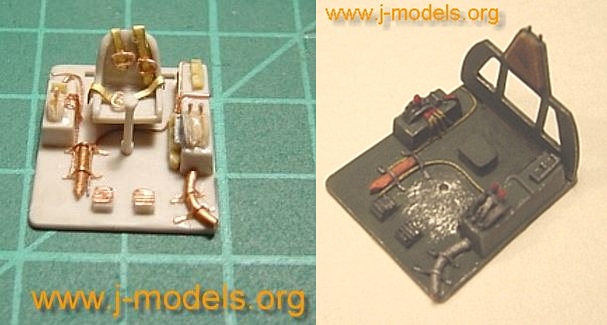 The pilot’s seat and the instrument panel (decal) once finished. The Raiden seat was painted in forest green but it was usually weathered by use.