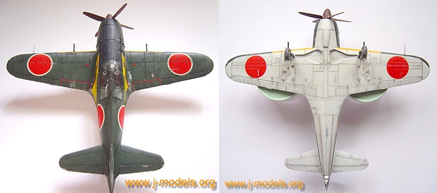 Aunque este modelo tiene ya bastantes años desde su lanzamiento por Hasegawa, la maqueta me pareció apropiada para reiniciar el modelismo de aviones con un modelo sencillo, que no presentase grandes dificultades de construcción. Las instrucciones muestran dos versiones del modelo: una, la que realicé, perteneciente al 352º Kokutai que pilotó el teniente Aoki en la base aeronaval de Omura en 1945, fácilmente distinguible por los rayos pintados a ambos lados del fuselaje, y otra del 302º Kokutai de la base de Atsugi en el mismo año. La única diferencia aparente entre ambas versiones, aparte de los numerales, era la forma de las palas de las hélices, por eso el modelo incluye dos piezas opcionales para las mismas.