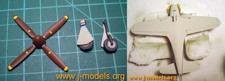 Although this model was first released by Hasegawa in 1987, it seemed to me quite handy to restart the modelling of planes with a simple model. The instructions show two versions of the model: the first, the one I built belonging to 352nd Kokutai which was flown by Lt. Aoki at Omura Naval Air Base in 1945, clearly distinguishable by the lightnings painted on both sides of the fuselage, and the second to 302nd Kokutai at Atsugi Naval Air Base in the same year. The only visible difference between these two versions, apart from their tail codes, was the shape of the propeller blades, that is why the model includes two parts for them.