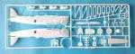 - Folleto de tamaño A4 formando 4 páginas impresas en blanco y negro. Contiene datos históricos y técnicos sobre el avión, un plano numerado de piezas y tres vistas del montaje sin secuenciar. La cara trasera de la caja muestra perfiles a color.