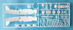 Dentro de la caja KP puso una hoja de calcas, las instrucciones, un bastidor de piezas transparentes y dos bastidores de piezas blancas. Las piezas están bien moldeadas, salvo el frontal del motor y una de las bombas, que muestran ligeros rechupes fáciles de rellenar, y limpias en general, con sólo ligeras rebabas en muy pocas de ellas y una marca positiva a cada lado del interior de la carlinga.