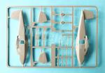 The fuselage sidewalls lack any detail. The cockpit and cabin floors are molded as a single piece. The cockpit includes a seat, a control stick, and rather poor pedals. The instrument panel is too short, showing only three raised gauges instead of the five on the actual panel. The cabin has side benches of varying capacities in the front and rear. These parts have separate supports and show raised base slats.