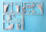 Tail surfaces are divided into very thin pieces that show nice engraved panels. The vertical fin and rudder have a double option, one of them detailed with the VHF antenna used by the Spanish and Thai Navy Harrier. Stabilizers are molded with tabs for fuselage attachment and again have the proper dihedral to ease construction.