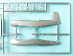 The cockpit is very simplified. The sides are smooth and feature two large, though shallow, ejector marks between the two cockpits. The floor contains the pedals and seat bases. There are no control columns, and both the seats and instrument panels are clearly oversized looking those of a 1/48 kit. The panels show sharp raised gadgets. The front panel is attached to the cockpit sides, while the rear panel is added to a bulkhead between the two cockpits. A rear bulkhead has the compass and the small clear cover behind it. The canopy is a single piece that is not too thick with the frame finely engraved.