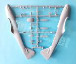 La toma de refrigeración del aceite bajo el morro se compone de dos mitades y un filtro interior, mientras que los lados del fuselaje delantero llevan las antenas del radar de interceptación. Uno de los dispositivos hay que formarlo pegándole las dos finas antenas de fotograbado al soporte, aunque esta pieza podría haberse incluido completa.