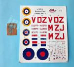 La hoja muestra escarapelas británicas de tres tipos, matrículas, marcas de cola y algunos estarcidos. Las calcas tienen aspecto fino y brillante, una correcta saturación de color y carecen de soporte excesivo.
