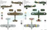 - 12-page booklet printed in black and white. It contains a historical summary about the aircraft, a numbered parts plan, a list of colors with matches in Federal Standard and Italeri acrylics codes, 7 assembly chapters and profiles in color for 5 aircraft. Clear and neatly printed.