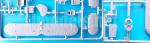 The main undercarriage is made up of two hydraulic shock-absorbers struts and the legs molded in one structure for the wheel spats. These are moulded in halves with an internal axle and show good exterior detail, such as the bolted removable spat section. The wheels come separate and in one piece, with good detail on the tires and hubs. The tailwheel is molded with the fairing and attached to the fuselage halves.
