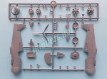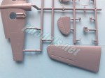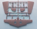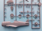 La caja trae dos bastidores con un total de 56 piezas y un bastidor transparente con cuatro piezas, además de las calcas y las instrucciones. El plástico es algo rígido y muestra ligeras líneas de molde en algunas piezas, como los filos de las alas o los neumáticos, pero será sencillo suprimirlas. Las piezas están correctamente moldeadas y son, en general, finas y sin marcas visibles. Las líneas de paneles están bien grabadas y son delgadas excepto en las superficies móviles, que llevan líneas algo más anchas y profundas. El número de piezas no parece suponer un reto especial en el montaje de la maqueta, aunque esta sea de tirada limitada.
