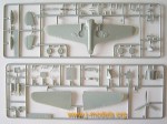 The cockpit brings the floor, a pair of control sticks, the instrument panel, the bottom half of the bulkhead and the engine filters. Both halves of the fuselage show a part of the internal ribs and some gadgets, an uncommon detail at this scale. From my viewpoint the best thing of the cockpit is the instrument panel. The gadgets are recessed and will surely be easily painted. The pedals come apart and are glued on the floor, but when you assemble them under the instrument panel, they look quite realistic. The seat, however, is rather for an N model. The worst thing is the bulkhead, which comes in two halves, the bottom half fits into the floor and the rest has been moulded with the fuselage sides. This way it is more difficult to sand and paint both parts.