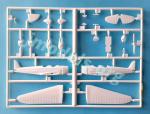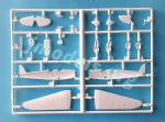En ambas ediciones la maqueta trae un único bastidor con escasas veinte piezas, un par de piezas transparentes, la hoja de calcas y las instrucciones. El plástico es fino y está bien moldeado. Hay algunas piezas que muestran ligeras rebabas, como las palas de la hélice, las figuras y un poco en el fuselaje, pero nada que deba inquietar. No pueden faltar las habituales marcas de eyector, negativas y positivas para que haya de todo, en la carlinga. También hay ligeros rechupes en las superficies de las carenas de las ruedas, pero se pueden tapar fácilmente.
