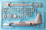 The internal fuselage floor is all in one piece, stepped in the cockpit and molded with raised lines to attach the passenger seats in the civil version. For the military version, ESCI designed an ovelapped floor to place different items in the cabin. The interior space is delimited by two bulkheads, one of them with an access cockpit door. These pieces have several marks to remove.