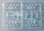 - Injected plastic (87 parts), clear plastic (13 parts).