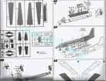 They are printed in black and white on a 10-page folded brochure. They include a historical summary, a numbered parts plan, 12 assembly sequences and color profiles. The exploded views are very clear and identical to ESCI instructions, but Italeri has supplemented them with useful information and views that help to correctly position several parts and with real-size templates to scratch the sensors that ESCI omitted. Also the profiles are different and printed in color. Paint references are shown in Italeri acrylics and Federal Standard codes.