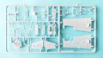 The floor is a single piece including the side consoles and an empty space in the rear, except for an oxygen cylinder molded on. The consoles have raised instruments, but decals are included to detail them, as is the radio on the right side.