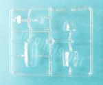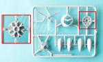 The engine cowling is a single piece. It is finely engraved, and detail includes the fins in the closed position, plus the carburetor and side cooling intakes, all of which are hollowed out. The engine is separated into the two cylinder rows. The inner one is glued to a disc that covers the fuselage gap and is not as nicely detailed as the outer one, which looks quite better. The shaft is placed between the two pieces without applying glue, allowing the propeller to be added later without hindering painting.