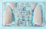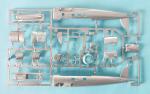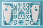 La caja contiene tres bastidores (blanco, gris y color metálico), un bastidor transparente, una amplia hoja de calcas y las instrucciones. El molde muestra bastante limpieza y sólo se observan mínimas líneas de molde en pocas piezas y algunas marcas de eyector muy leves en el interior de la carlinga. Casi todas las piezas de menor tamaño están moldeadas con excesivo grosor, lo que afecta a la definición de muchos detalles, que están claramente un poco por encima de la escala.