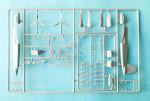 La caja contiene dos bastidores, un pequeño bastidor transparente, la hoja de calcas y las instrucciones. El molde posee un aspecto limpio y las piezas están moldeadas con nitidez, sin rebabas ni marcas que afecten a zonas visibles, excepto una positiva sobre el asiento del piloto. Los paneles están grabados con muy buena definición en profundidad y anchura para la escala.