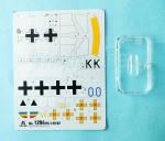 La hoja de calcas está impresa por Zanchetti, habitual proveedor de Italeri. Los motivos muestran cruces alemanas y rumanas, instrumentos de los motores, matrículas, insignias de unidad, bandas del fuselaje, marcas de las alas y estarcidos. Todos ellos poseen un acabado fino y brillante, con buena densidad de color y registro. No hay soporte excedente.