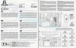 - 10-page A5 folded leaflet printed in black and white. It contains a numbered parts plan, a list of colors with Model Master paint matches, 8 assembly chapters and 3 pages of profiles. The back side of the box shows profiles in color and a list of Italeri-Model Master paints.