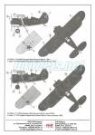 Instructions have four pages printed on a folded A4 sheet. They include a numbered parts plan, a table of Model Master paints, five main assembly steps and a page of profiles showing two I-15s with and without camouflage. The profiles of the camouflaged aircraft are too dark and lack contrast to check the different colour lines.