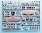 Dentro de la resistente caja de cartón con tapa en color hay una hoja de calcas, un folleto de instrucciones y siete bastidores de distinto tamaño, uno de ellos contiene las piezas transparentes. Las mitades de las alas y el fuselaje vienen por separado y dos de los bastidores deben su pequeño tamaño, al parecer, a que no pudieron fabricarse con el principal para no exceder el tamaño de la caja.