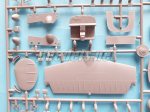 The interior space is limited by a rear bulkhead that shows a door and its separate handle and an open cockpit bulkhead. The lower half of this bulkhead is molded separately and is glued over the intermediate space between the wings that is the cabin floor. In the cockpit we find the instrument panel molded with the front bulkhead. This piece also includes the space for the pedals, which are separated. The instrument panel is quite good and shows raised gauges and there is also an extra console above it. There is a switch box on the upper front of the cockpit, which is also a separate piece.