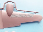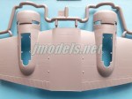 El espacio interior está delimitado por un panel posterior que muestra una puerta y su picaporte separado y otro anterior abierto que da acceso a la carlinga. La mitad inferior de este mamparo está separada y va pegada sobre el espacio intermedio entre las alas que hace de suelo. En la carlinga encontramos la consola de instrumentos moldeada con el panel anterior. Esta pieza incluye también el espacio de los pedales, que vienen separados. El panel de instrumentos es muy bueno y muestra los indicadores en relieve y hay además alguna consola extra por encima de este. Hay un cuadro de interruptores en la parte frontal superior de la carlinga, que también es una pieza aparte.