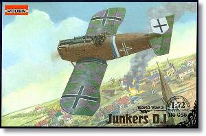 La maqueta representa el modelo final de producción que sufrió un recorte en la envergadura del fuselaje y las alas debido a los problemas de vibración y maniobrabilidad detectados justo al comienzo de la fabricación en serie. Todo indica que el Junkers D.I llegó a entrar en servicio en el frente de Flandes en octubre de 1918, pero en muy escaso número. No se tiene tanta certeza de que fuese empleado en combate durante la Gran Guerra, aunque sí estuvo operativo con el FreiKorps alemán contra las fuerzas bolcheviques en los países bálticos en 1919. Con las reservas que sean necesarias, se puede afirmar que las identificaciones de las versiones de pintura de esta caja son ficticias.
